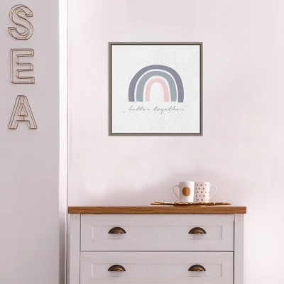 - CUSTOM CANVAS ARTWORK DETAILS: Better Together I by Wild Apple Portfolio. DESCRIPTION: A sweet message is perfectly paired with a rainbow, the ultimate beacon of positivity and luck. Three simple swipes of pastel-hued colors come together to form the image in shades of gray, green and pink. The uplifting, cursive-written missive underneath serves as a reminder that we’re all in this together. ARTIST BIO: Wild Apple Portfolio/Photography showcases the collaborative efforts of our designers and art directors. Using found objects, documents, photography, and vintage art, the work of our studio addresses current design trends.