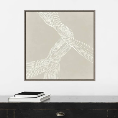 ART DESCRIPTION: Thin creamy parallel lines branch and expand across the beige canvas-like fibers of a muscle in this neutral abstract print. This Amanti Art canvas art print was created by Isabelle Z and printed by Amanti Art in Madison WI. The canvas is stretched by hand and finished with a float frame. Individually made using traditional custom framing techniques, it has the quality you would expect from your local frame shop. Because of our attention to detail and focus on artistry, architects, interior designers, and homeowners alike choose this framed canvas artwork to create beautiful living spaces.