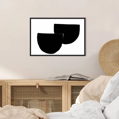 ART DESCRIPTION: A pair of black, rough semicircles are set against a white background. They give the impression of pocket patches waiting to be sewn. This picture makes a simple, but elegant statement that adds a modern touch to a room. This Amanti Art canvas art print was created by PI Gallerie and printed by Amanti Art in Madison WI. The canvas is stretched by hand and finished with a float frame. Individually made using traditional custom framing techniques, it has the quality you would expect from your local frame shop. Because of our attention to detail and focus on artistry, architects, interior designers, and homeowners alike choose this framed canvas artwork to create beautiful living spaces.