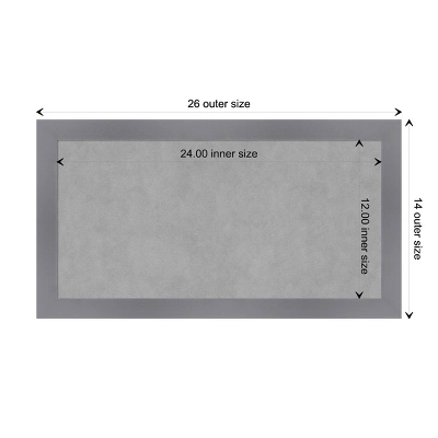 - DIMENSIONS: The overall size of this framed magnet board measures 26 x 14 inches, including the frame. The magnetic area measures 24 x 12 inches.