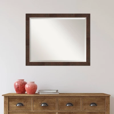 Give your home or office the finishing touch with this Beveled Wall Mirror framed with the Wildwood Brown Narrow frame. Individually made using traditional custom framing techniques, it has the quality you would expect from your local frame shop. It holds its value with premium finishing that can be appreciated up close. Because of our attention to detail and focus on artistry, architects, interior designers, and homeowners alike choose this mirror to create beautiful living spaces.