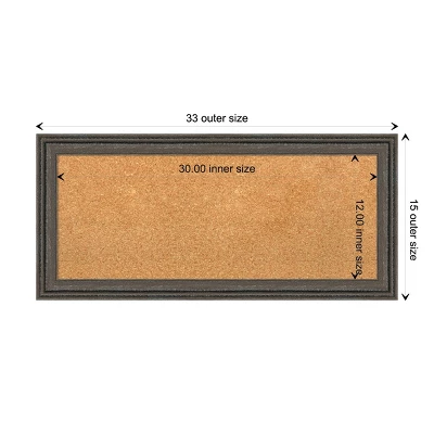 - DIMENSIONS: The overall size of this framed corkboard measures 33 in. x 15 in., including the frame. Its functional cork board area measures 30 in. x 12 in.