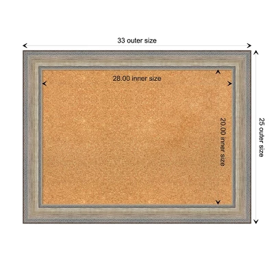 - DIMENSIONS: The overall size of this framed corkboard measures 33 in. x 25 in., including the frame. Its functional cork board area measures 28 in. x 20 in.