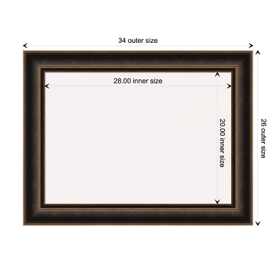 - DIMENSIONS: The overall size of this framed corkboard measures 34 in. x 26 in., including the frame. Its functional cork board area measures 28 in. x 20 in.