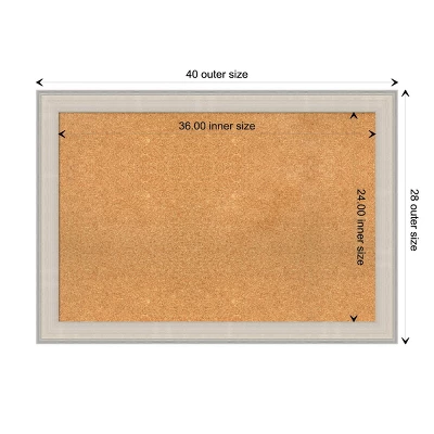 - DIMENSIONS: The overall size of this framed corkboard measures 40 in. x 28 in., including the frame. Its functional cork board area measures 36 in. x 24 in.