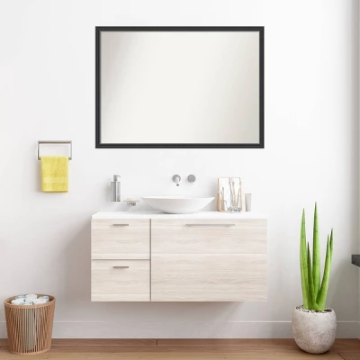 Give your bathroom the finishing touch with this 100% real wood Non-Beveled Wall Mirror framed with the Stylish Black frame. Individually made using traditional custom framing techniques, it has the quality you would expect from your local frame shop. It holds its value with premium finishing that can be appreciated up close. Because of our attention to detail and focus on artistry, architects, interior designers, and homeowners alike choose this mirror to create beautiful living spaces.