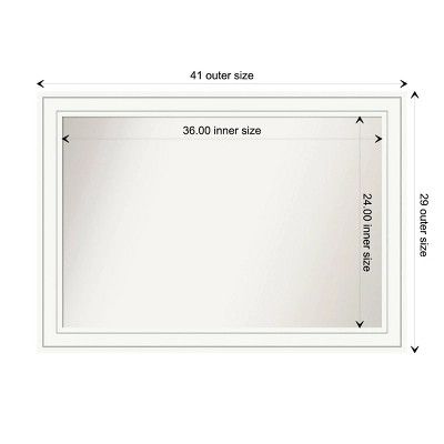 - MIRROR DETAILS: This mirror features premium glass for a clear, undistorted image and has a non-beveled surface to maximize the viewing area. The overall size of this wall mirror measures 41 x 29 inches, including the frame. Its reflective area measures 36 x 24 inches.