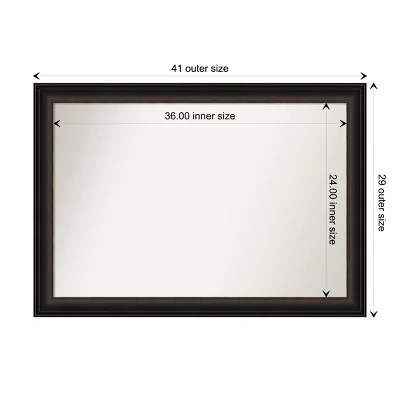 - MIRROR DETAILS: This mirror features premium glass for a clear, undistorted image and has a non-beveled surface to maximize the viewing area. The overall size of this bathroom mirror measures 40.5 x 28.5 inches, including the frame. Its reflective area measures 36 x 24 inches.