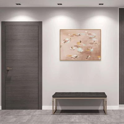 - FRAME DETAILS: The canvas is framed in the Sylvie Maple frame, which is a modern, float frame with natural maple woodgrain coloring and dramatic depth. The frame measures 1 in. wide and stands 2 in. off the wall. The canvas appears as if it is floating in the frame because it has a narrow gap between the edge of the canvas and the frame. The overall size of this framed canvas print measures 42 in. W x 32 in. H.