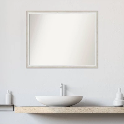 Give your bathroom the finishing touch with this 100% real wood Non-Beveled Wall Mirror framed with the Two Tone Silver frame. Individually made using traditional custom framing techniques, it has the quality you would expect from your local frame shop. It holds its value with premium finishing that can be appreciated up close. Because of our attention to detail and focus on artistry, architects, interior designers, and homeowners alike choose this mirror to create beautiful living spaces.