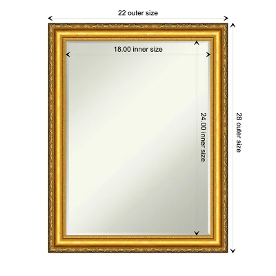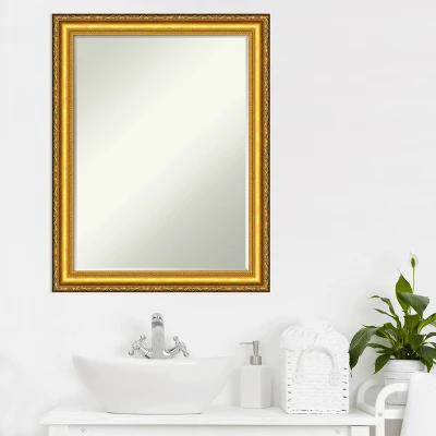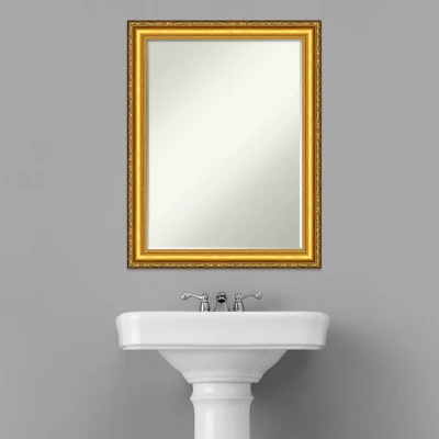 Amanti Art Colonial Embossed Gold Petite Bevel Wood Bathroom Wall Mirror 27.5 X 21.5 In.