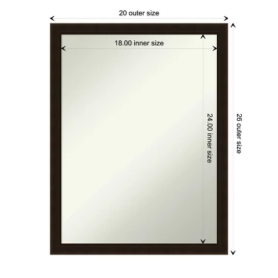 - MIRROR DETAILS: This mirror features premium glass for a clear, undistorted image and has a non-beveled surface to maximize the viewing area. The overall size of this bathroom mirror measures 20 x 26 inches, including the frame. Its reflective area measures 18 x 24 inches.
